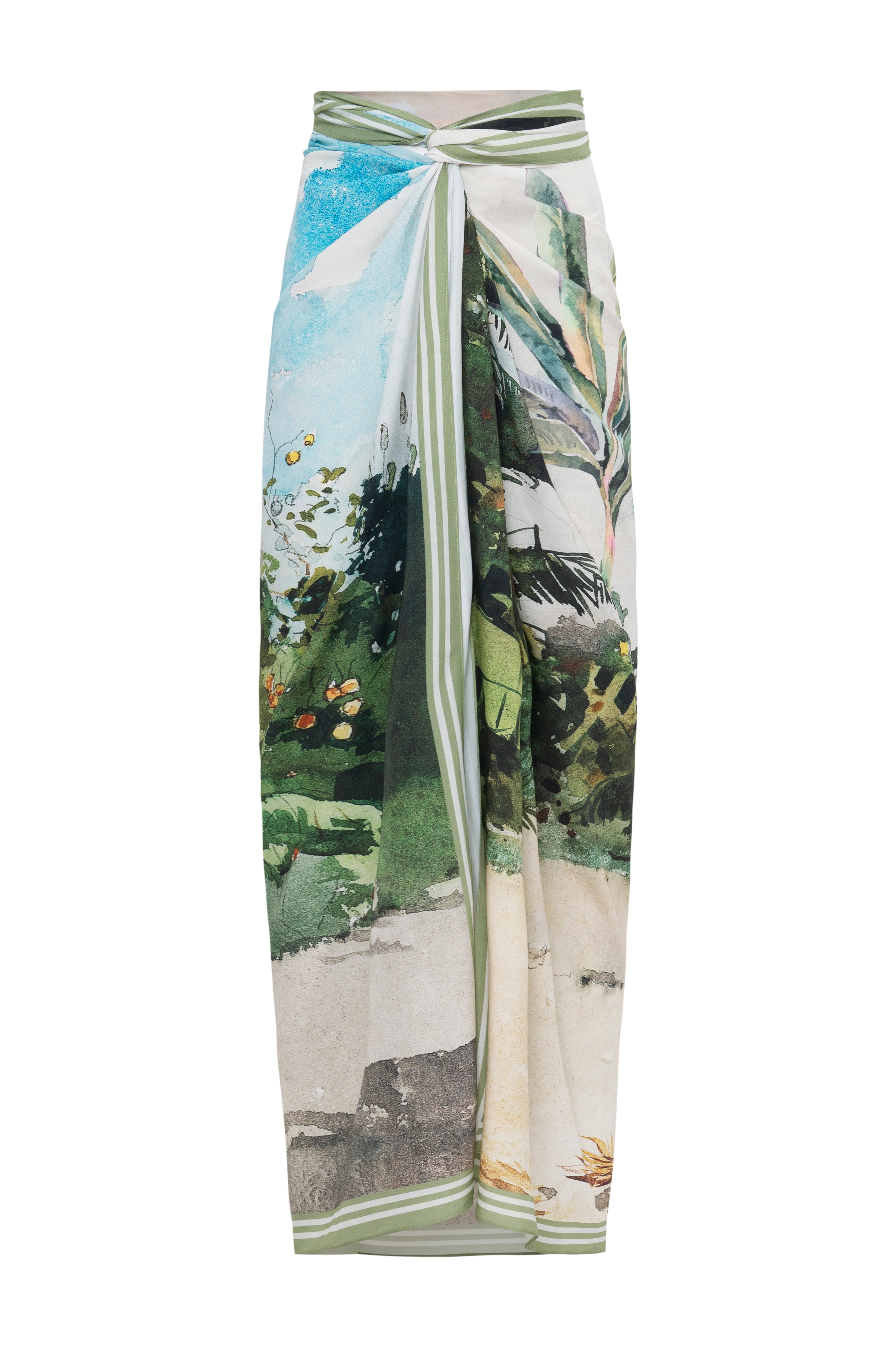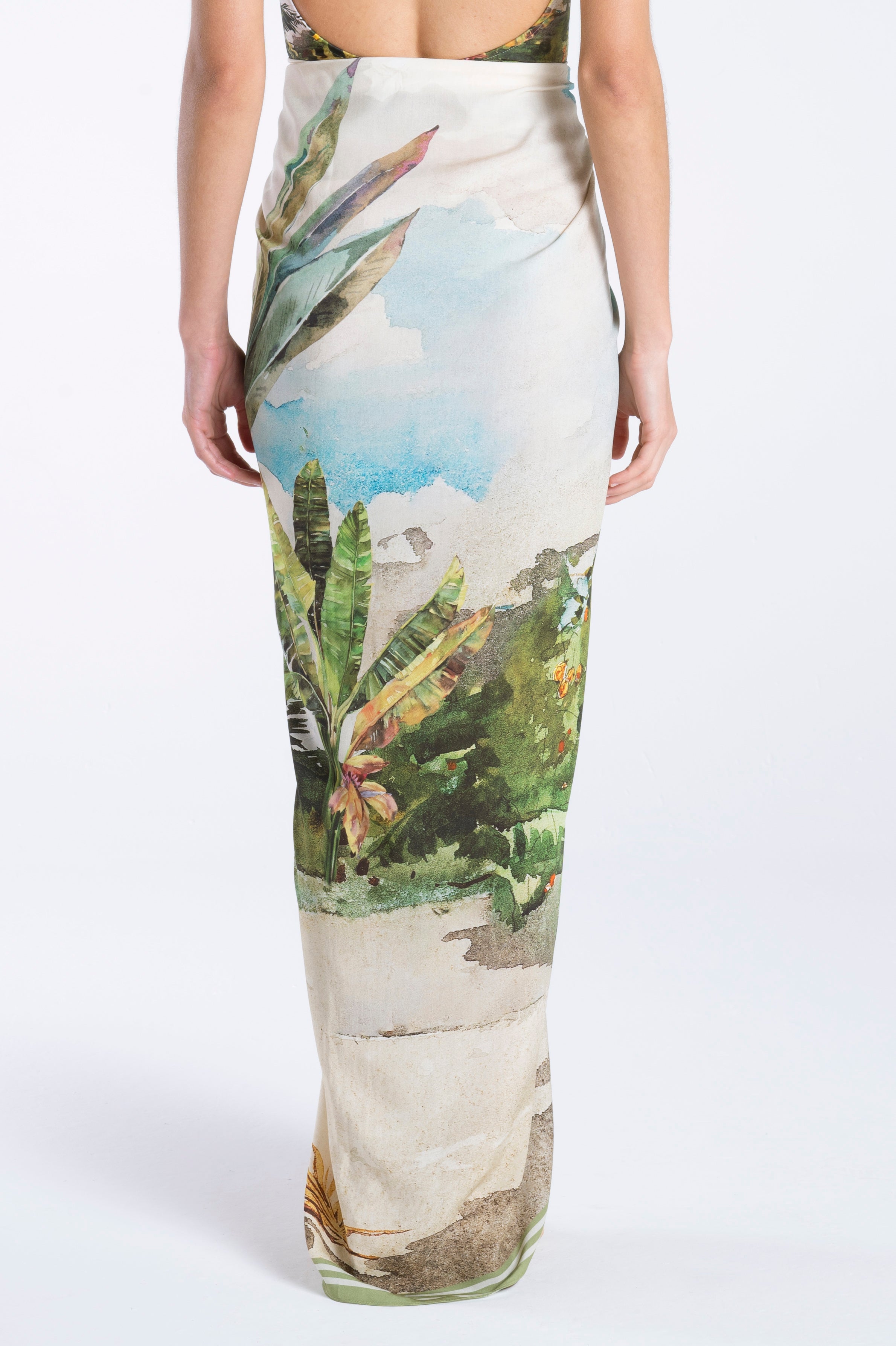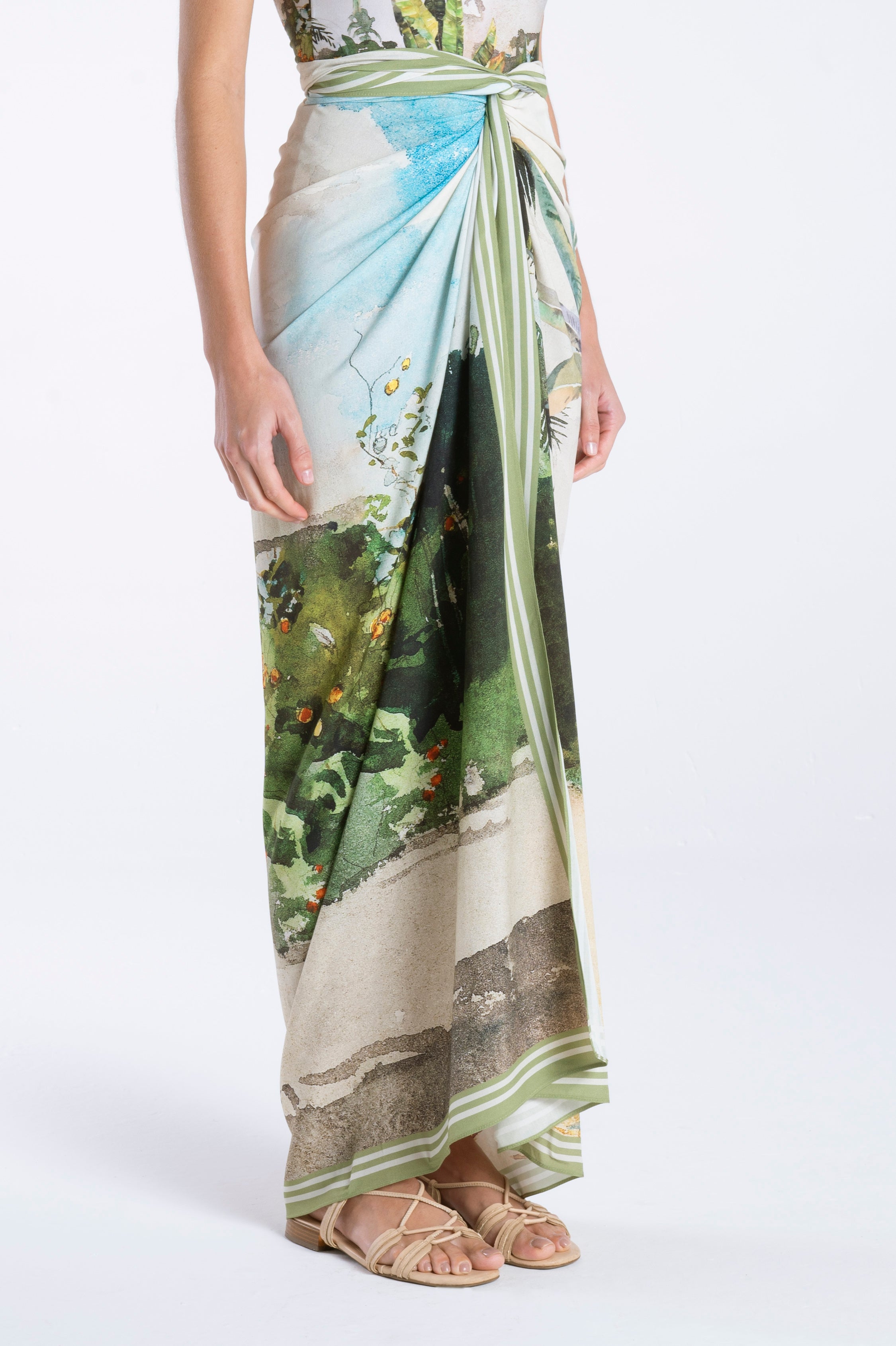 Introducing Michele, a luxurious pareo skirt in our exclusive Beach print. Crafted from elegant fabric, this stylish cover-up boasts stunning print. With a full-length design and a dramatic high slit, it's the epitome of sophistication and elegance after a long day by the pool.
