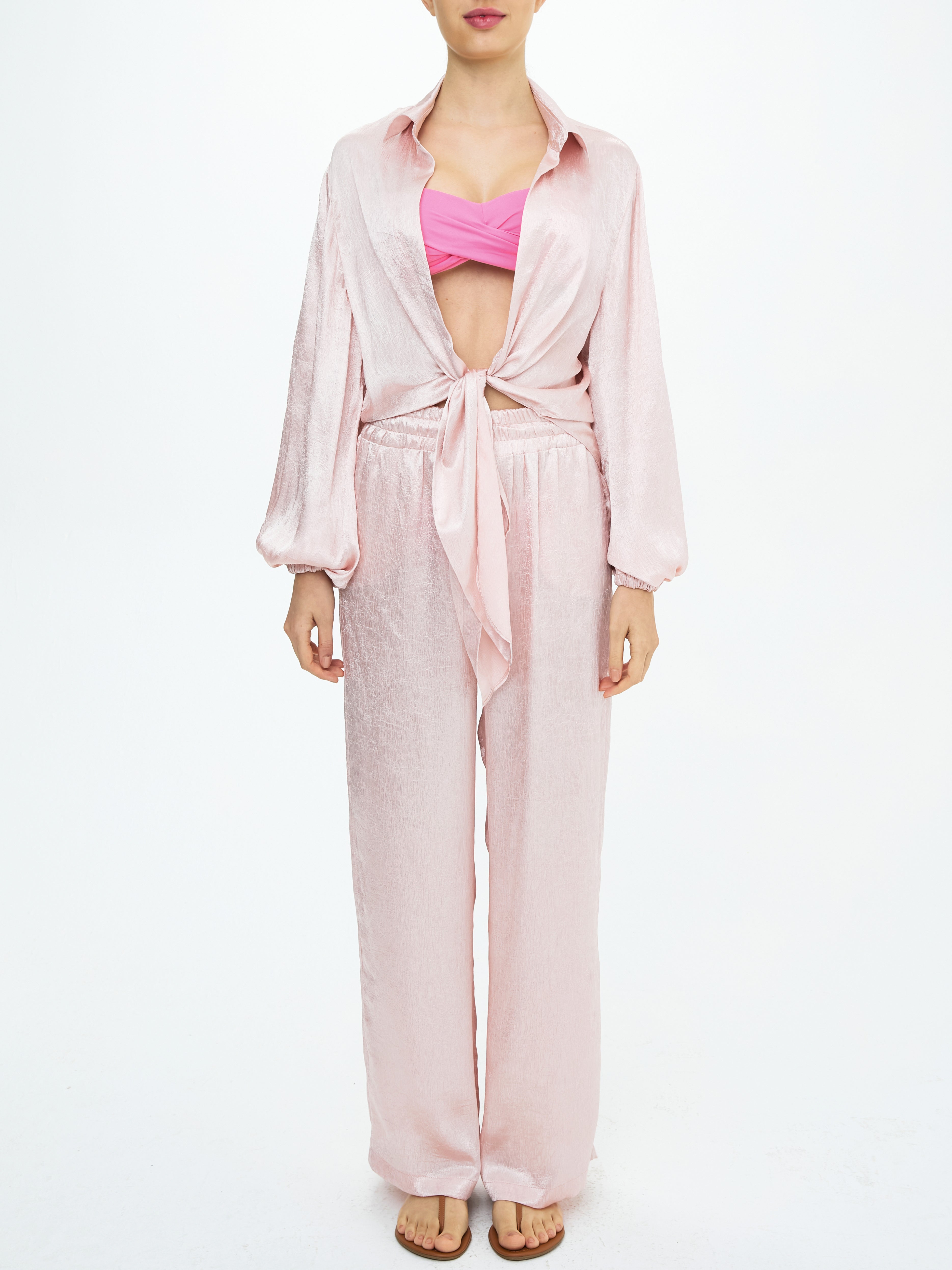 Sweet and luxurious, the Emily Rosa Bailarina pant is crafted from silky satin faced poly for an ultra-elegant look and feel. Perfect for lounging in style, the cool drape and soft handfeel will have you feeling relaxed and pampered.